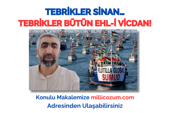 Vurulmak, yaralanmak, alabora olup Akdeniz’de boğulmak, kuduz İsrail askerlerince tutuklanmak gibi her türlü tehlikeyi göze alarak, mazlum ve mağdur Gazze halkının sesini dünyaya duyurmak ve insanlığın dikkatini bu vahşete çevirmiş olmak için yola çıkan, hayatlarını ve rahatlarını hiçe sayan kahramanların en şuurlu ve onurlu katılımcılarından biri de kıymetli SİNAN’dı.