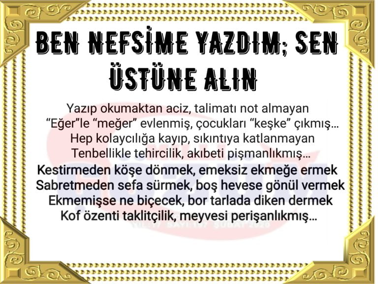 BEN NEFSİME YAZDIM; SEN ÜSTÜNE ALIN (ŞİİR)
