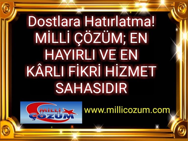 Anasayfa » Dostlara Hatırlatma! MİLLİ ÇÖZÜM; EN HAYIRLI VE EN KÂRLI FİKRİ HİZMET SAHASIDIR