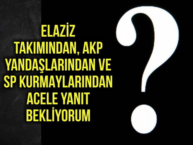 ELAZİZ TAKIMINDAN, AKP YANDAŞLARINDAN VE SP KURMAYLARINDAN ACELE YANIT BEKLİYORUM