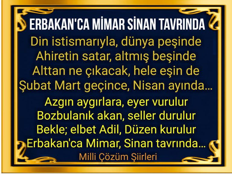 ERBAKAN’CA MİMAR SİNAN TAVRINDA (ŞİİR)