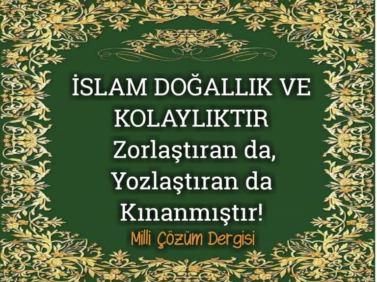 İSLAM DOĞALLIK VE KOLAYLIKTIR Zorlaştıran da, Yozlaştıran da Kınanmıştır!