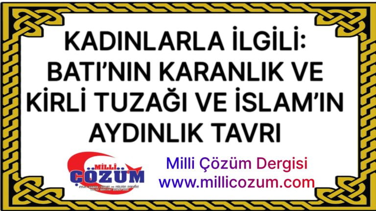 “Kadın hakları ve hürriyetleri” gibi jelatinli kılıflar altında kadınlık haysiyetini ayaklar altına alan… Kadınları ve kızları soyup sokağa salarak, onları şehvet tuzağı ve tutsağı ve reklam vasıtası yapıp aile huzurundan ve insanlık onurundan uzaklaştıran barbar Batı Medeniyeti, maalesef dünyayı genelevine; kadınları, hatta kız ve erkek çocukları ise seks köleliğine çevirmiş durumdadır. Siyonist ve emperyalist zihniyetin bu bâtıl ve berbat başarısı, Rahmetli Erbakan Hocamızın tabiriyle “Şeytanın şaheseri” sayılmalıdır!