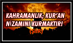KAHRAMANLIK; KURAN NİZAMINI KURMAKTIR! (ŞİİR) Yazar: yonetici Şubat 18, 2023 yazdı yonetici Şubat 18, 2023 0 Yorum 245 Görüntüleyen Paylaş 0 FacebookTwitterLinkedinWhatsappTelegramEmail yonetici Yorum Yap İptal EtYorum yapabilmek için oturum açmalısınız.