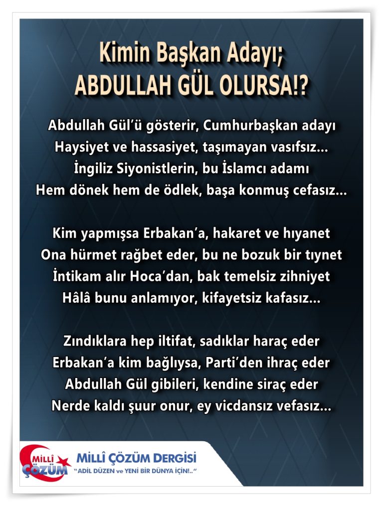 Kimin Başkan Adayı; ABDULLAH GÜL OLURSA!?