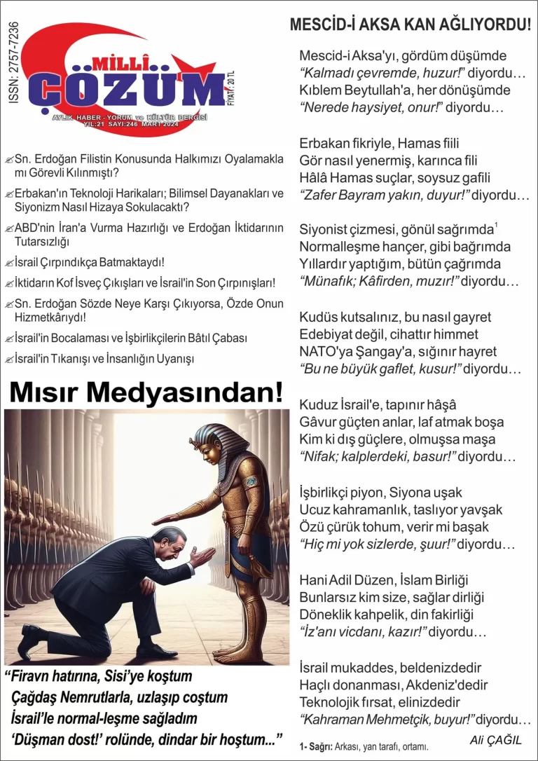 Adil Düzen MART 2024 Yazar: yonetici Mart 6, 2024 yazdı yonetici Mart 6, 2024 0 Yorum 1k Görüntüleyen DERGİMİZİN PDF OLARAK İNCELEMEK İÇİN TIKLAYINIZ İlginizi Çekebilir HAZİRAN 2021 OCAK 2011 HAZİRAN 2018 TEMMUZ 2011 MART 2024MİLLİ ÇÖZÜM DERGİSİ Paylaş 0 FacebookTwitterLinkedinWhatsappTelegramEmail yonetici BENZER İÇERİKLER Kasım 22, 2025 Kasım 16, 2025 ARALIK 2024 Aralık 2, 2024 TEMEL KARAMOLLAOĞLU’NUN AMACI VE “EL-EMAN”LARININ AYARI! Kasım 24, 2024 KASIM 2024 Kasım 18, 2024 EKİM 2024 Ekim 7, 2024