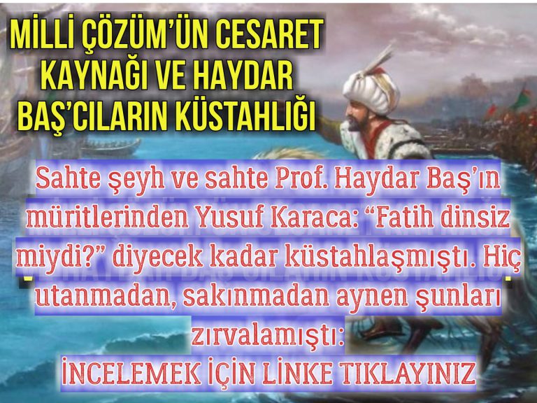 Şeyhliği de Prof.luk etiketi de şüpheli ve şaibeli olan ve ardından uzun yıllar parti şefliği yapan ve sonra Korona Vebasıyla bu dünyadan ayrılan Haydar Baş’ın müritlerinden Yusuf Karaca: “Fatih dinsiz miydi?” diyecek kadar küstahlaşmıştı. Hiç utanmadan ve sakınmadan aynen şunları zırvalamıştı: