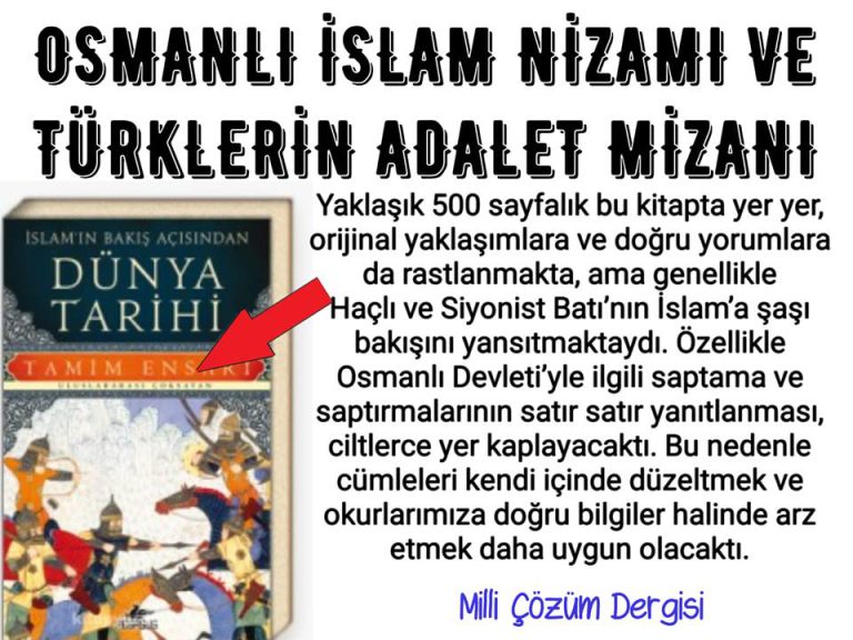 Afganistan asıllı bir Müslüman olan Tamim Ensari, “İslam’ın Bakış Açısından DÜNYA TARİHİ” isimli bir kitap hazırlamıştı. Oysa peşinen belirtelim ki, bu kitaba; “Haçlı Batı gözüyle, bir Müslümana yazdırılan İSLAM TARİHİ” denmesi daha uygun olacaktı. Çünkü Arnold Toynbee ve Hendrick Van Loon gibi Batılı tarihçilerin etkisiyle hazırlandığını kendisi de ağzından kaçırmıştı. (Sh: 11) “Hz. Peygamberimizin Hira mağarasındaki Hz. Cebrail’le muhatap olmasını “bir hayal yansıması” (Sh: 43) olarak yorumlamaktan, “Acaba Muhammed’in sözleri kendisine mi, yoksa Rabbine mi aitti?” (Sh: 54) şeklindeki kafa karıştırıcı çarpıtmalara; Peygamber Efendimizin 10 bin kişilik düzenli ve disiplinli bir orduyla ve yüksek strateji oyunlarıyla, ama kansız ve savaşsız teslim aldığı Mekke’nin, “Müşriklerce kendiliğinden bağışlandığını” (Sh: 56) iddia eden saptırmalarına kadar, bir sürü kasıtlı yanlışlıklar barındıran bu kitabına, kısa ve öz bir tenkit yazmamız lazımdı. Yazar, “İslam; Çin, Hindistan ve Batı Medeniyetinin bir öğesi ve özeti sayılır” (Sh: 427) diyerek münafık niyetini ve kiralık mahiyetini ortaya koymaktaydı.