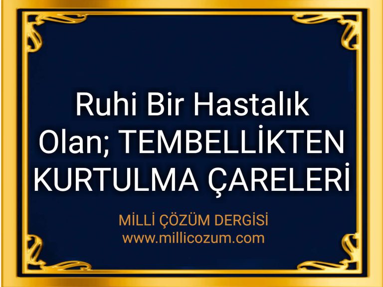 Bazılarında ise ilim var, amel yoktur. Bilgi var, beceri yoktur. Oysa; asıl amaç öğrenmek değil, üretmektir. Bilgisini, beceri ve berekete dönüştürmektir. Atalet, rehavet, miskinlik, pasiflik, yavaşlık, yılgınlık, durgunluk ve yorgunluk olarak karşımıza çıkan tembellik: Bedende (fiziksel olarak); hareketsizlik, gayretsizlik, geciktirmecilik, girişimsizlik şeklinde kendini göstermektedir. Beyinde (zihinsel olarak) ise; ilgisizlik, isteksizlik, gayesizlik, mevcutla yetinmecilik, kötümserlik ve ümitsizlik şeklinde tezahür etmektedir. Yeni şeyler öğrenmeye… Bilgi ve becerilerini geliştirmeye… Bildiklerini pratiğe dönüştürmeye… Öğrenmesi ve yerine getirmesi gerekenleri, önem ve öncelik sırasına yerleştirmeye çalışmayan insan, görünüşte yaşasa da, gerçekte ölmeye başlamış, fikren ve fiilen devre dışı kalmış kimse demektir.