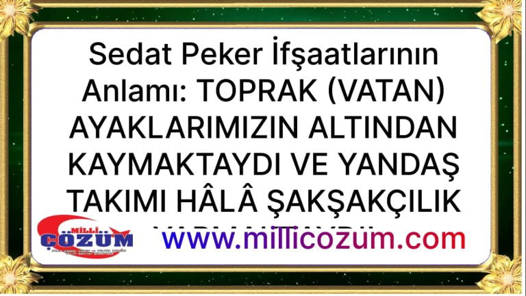 Sedat Peker İfşaatlarının Anlamı: TOPRAK (VATAN) AYAKLARIMIZIN ALTINDAN KAYMAKTAYDI VE YANDAŞ TAKIMI HÂLÂ ŞAKŞAKÇILIK YAPMAKTAYDI!