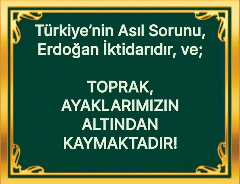 Türkiye’nin Asıl Sorunu, Erdoğan İktidarıdır, ve; TOPRAK, AYAKLARIMIZIN ALTINDAN KAYMAKTADIR!
